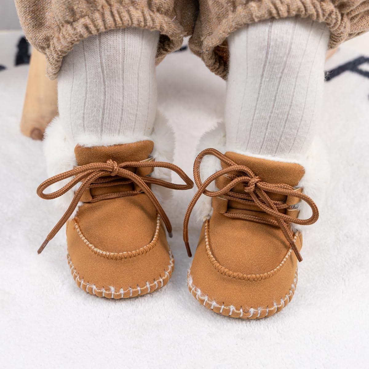 Baby Boys Girls Shoes Winter Warm Infant High-Top Ankle Sneakers Non-Slip Soft Sole Toddler Prewalker Newborn First Walkers Crib Shoes(Cg3421/Brown)